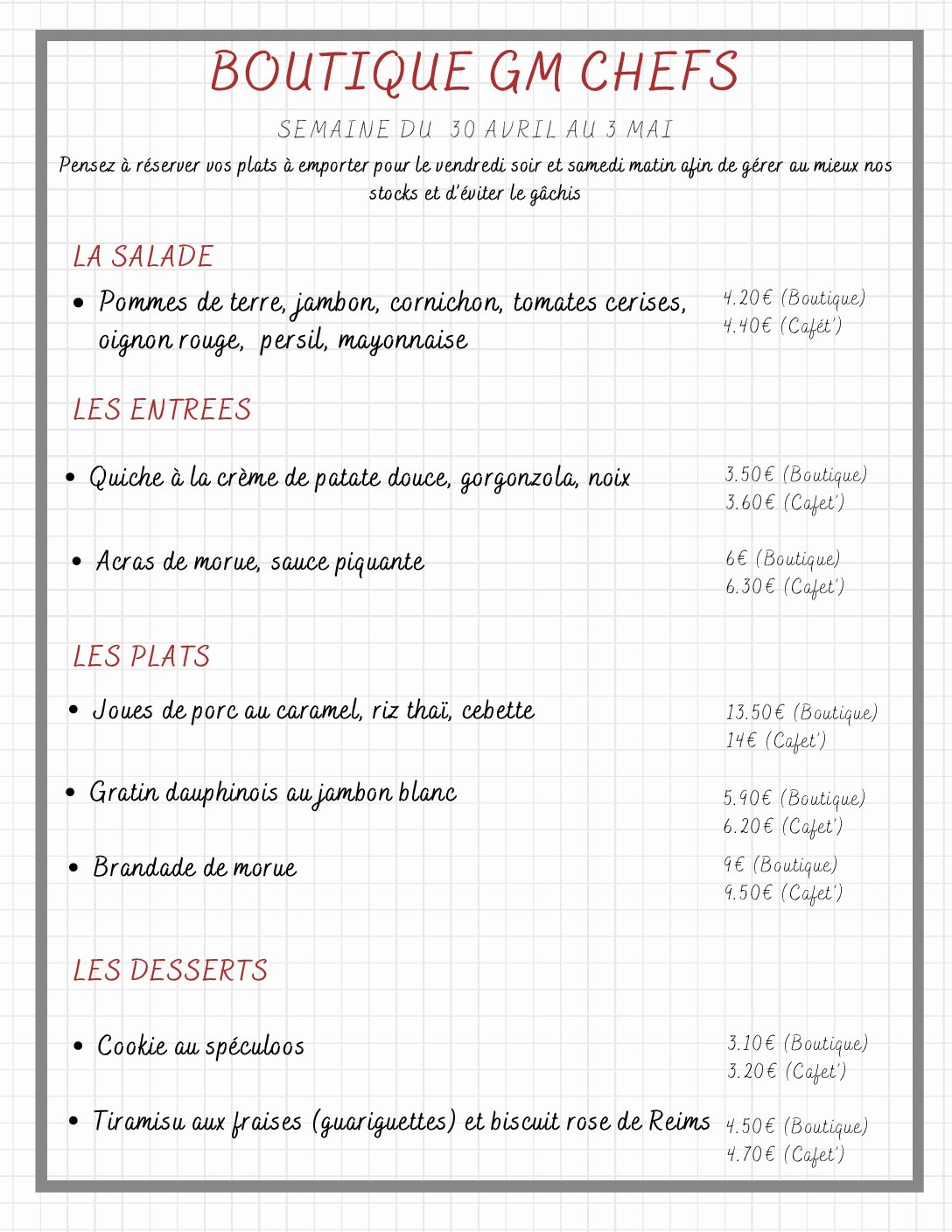 Notre menu traiteur évolue chaque semaine.